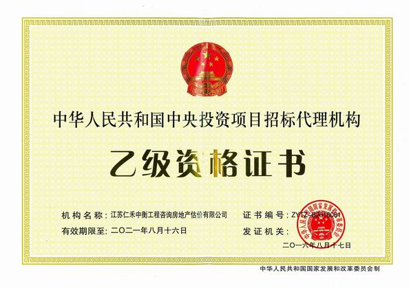 - 招標(biāo)代理甲級(jí)資格證書(shū)